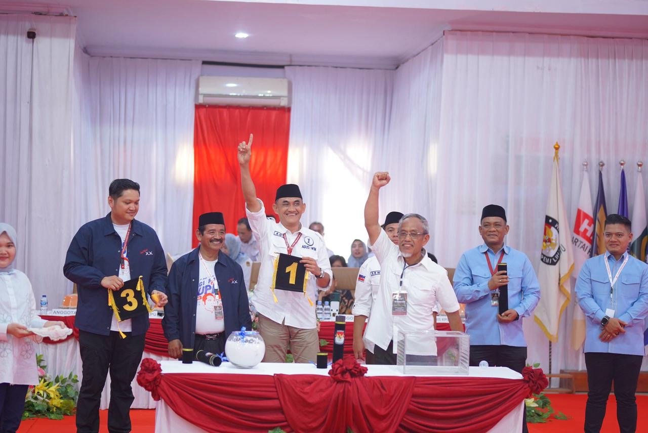 ARUS INDONESIA, Luwu – Pasangan calon Bupati dan Wakil Bupati Luwu, Agussalim dan Erwin Barabba (Agus-Win), secara resmi mencabut nomor urut 1 pada rapat pleno terbuka Komisi Pemilihan Umum (KPU) Kabupaten Luwu yang digelar pada Senin (23/09).