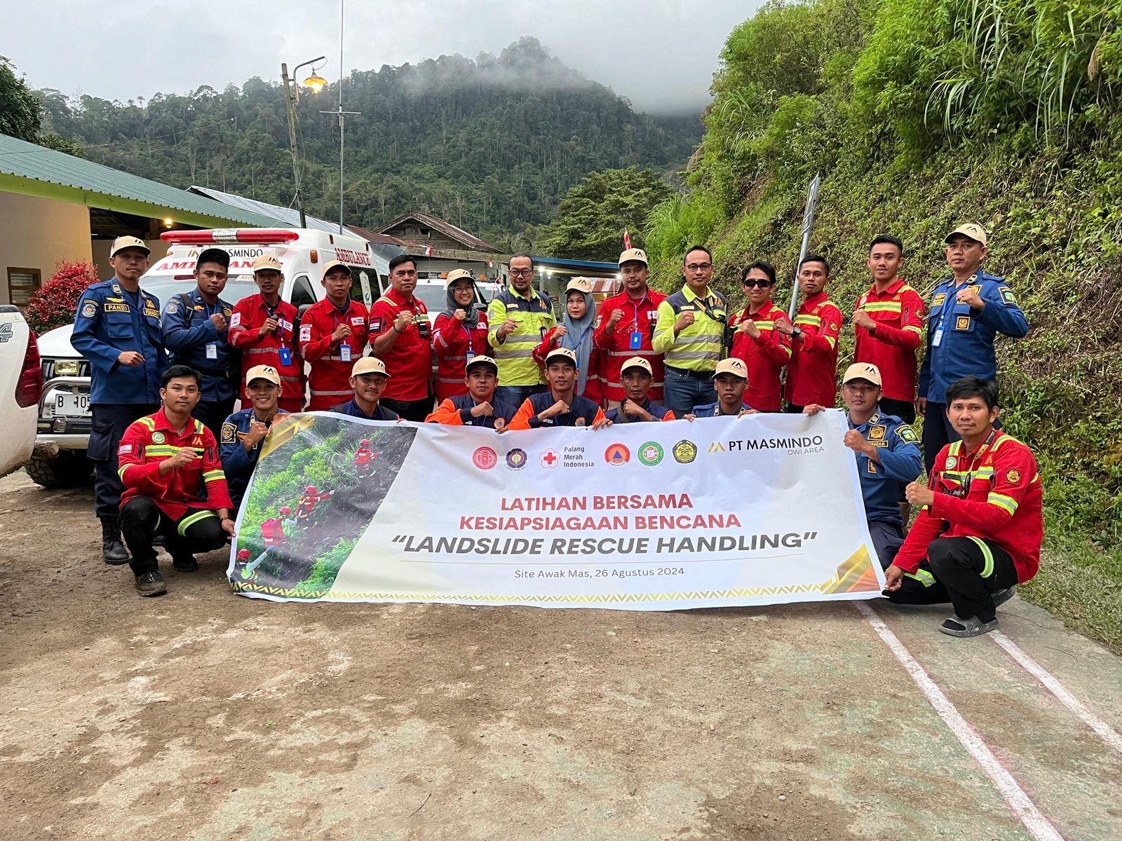 ARUS INDONESIA, Luwu – PT Masmindo Dwi Area (MDA) lakukan giat latihan bersama kesiapsiagaan bencana yang bekerja sama dengan Badan Penanggulangan Bencana Daerah (BPBD), Palang Merah Indonesia (PMI), dan Dinas Pemadam Kebakaran (Damkar) Kabupaten Luwu pada 26 Agustus 2024 di lokasi site MDA.