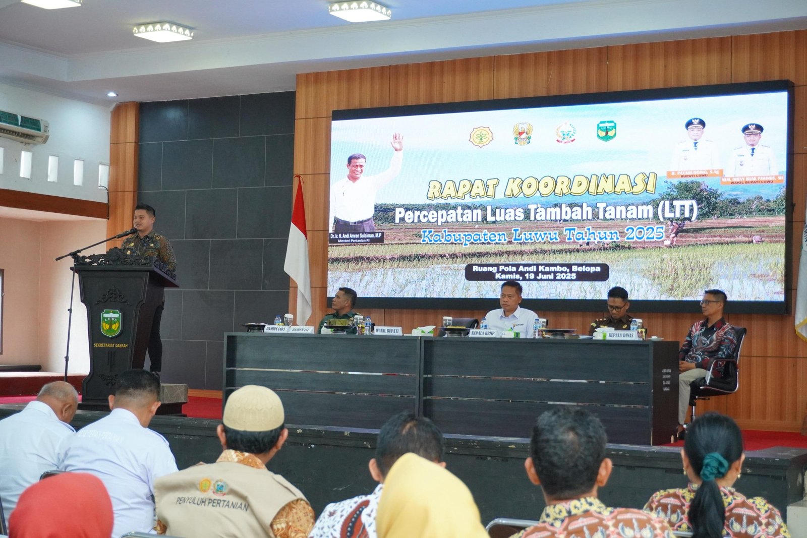 ARUS INDONESIA, Luwu – Pemerintah Kabupaten Luwu menggelar Rapat Koordinasi Percepatan Luas Tambah Tanam (LTT) tahun 2025 di Ruang Pola Andi Kambo, Kantor Bupati Luwu, Kamis (19/6/2025). Rapat ini menjadi momentum penting dalam upaya bersama mendukung ketahanan dan swasembada pangan nasional, khususnya melalui peningkatan Indeks Pertanaman (IP) di Kabupaten Luwu.