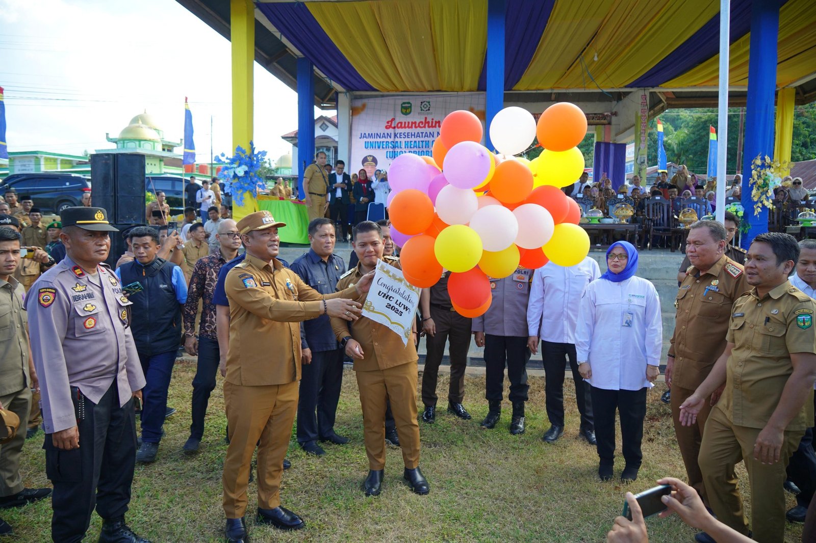 ARUS INDONESIA, Luwu – Bupati Luwu, H. Patahudding, S.Ag bersama Wakil Bupati Muh. Dhevy Bijak Pawindu, SH. secara resmi meluncurkan program unggulan Universal Health Coverage (UHC) Prioritas di Lapangan Veteran, Kecamatan Larompong, Senin (28/4/2025).