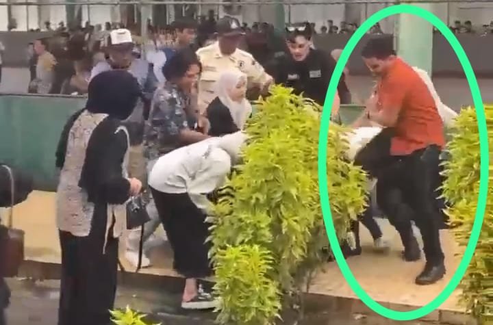 Dalam video yang diterima, Jumat (25/4/2025), staf tersebut mengenakan kemeja berwarna orange dan celana berwarna hitam. Staf itupun terlihat diduga menginjak salah satu mahasiswa menggunakan kaki kanannya.
